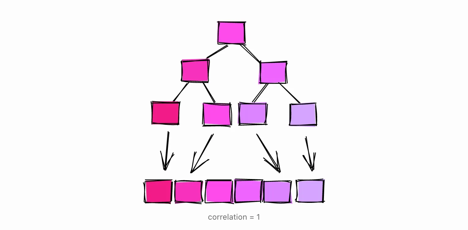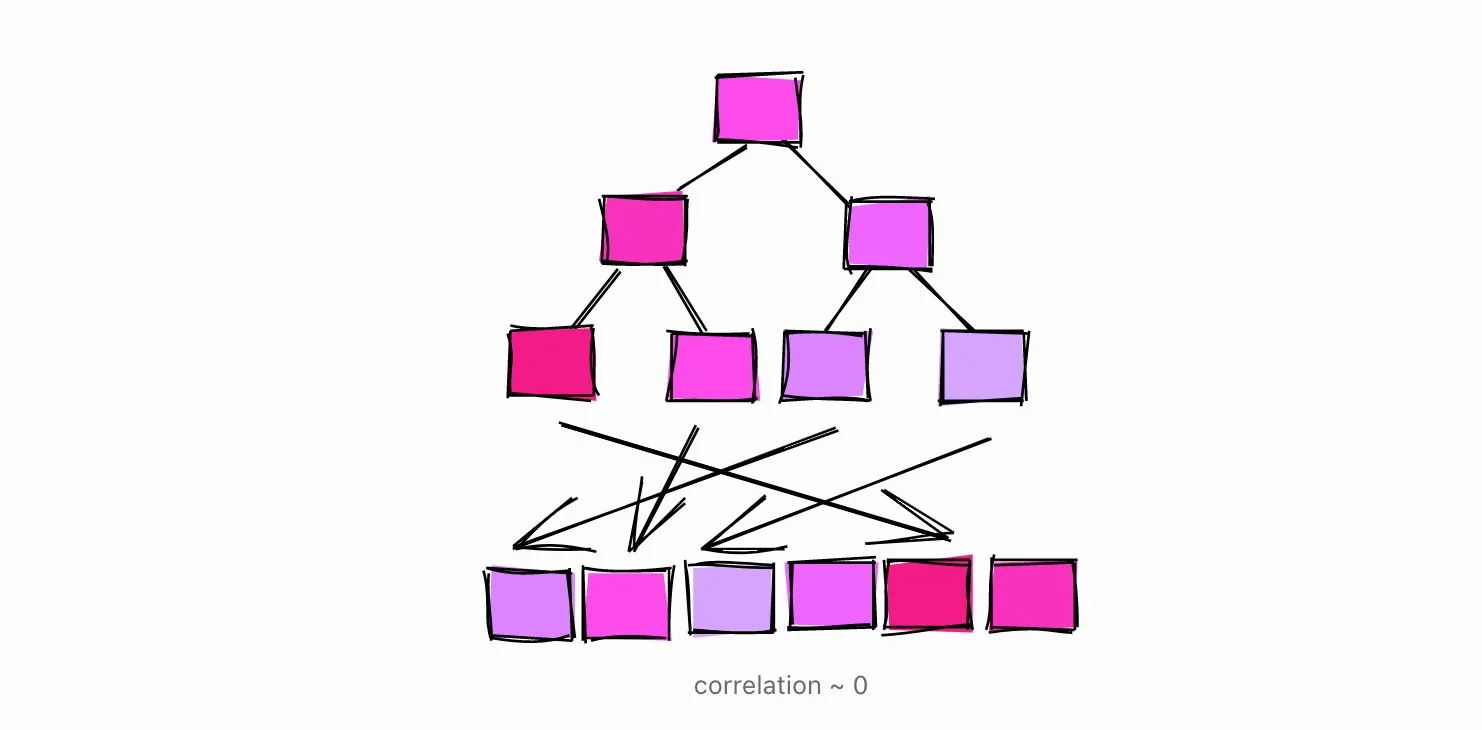 让我们再举一个例子,这次列中的值会有一个接近于零的相关性,这意味着它们没有被排序。